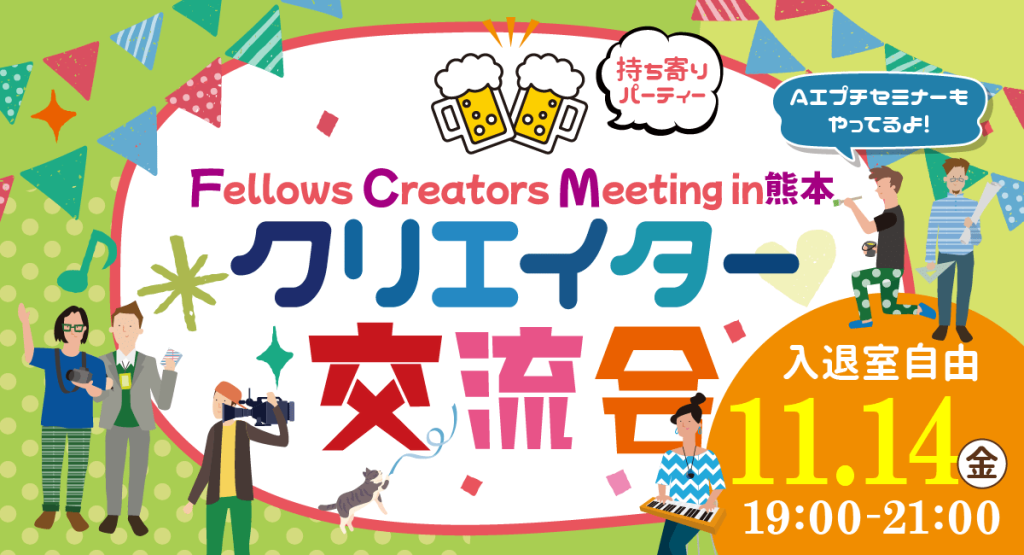 2025年11月14日(金)19:00より、持ち寄り型クリエイター交流会「Fellows Creators Meeting in熊本」を開催いたします!